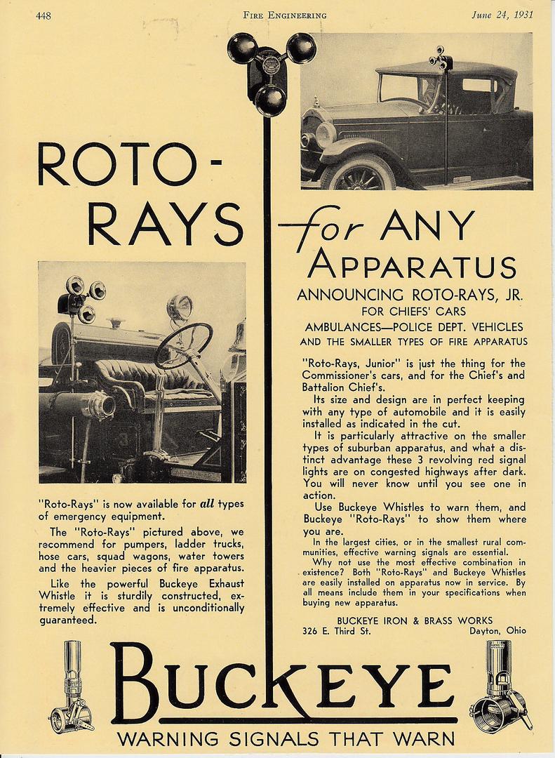The story of the Whirl-E-Bird begins with the original spinning warning light introduced in the early 1930s by Buckeye Iron and Brass Works. Designed to improve visibility on fire apparatus and ambulances, this three-lamp spinning beacon used mechanical motion and front-mounted placement to cut through visual clutter at intersections. At the time, it represented a meaningful advancement over static and early flashing warning lights and quickly became a recognizable feature on fire engines across North America.